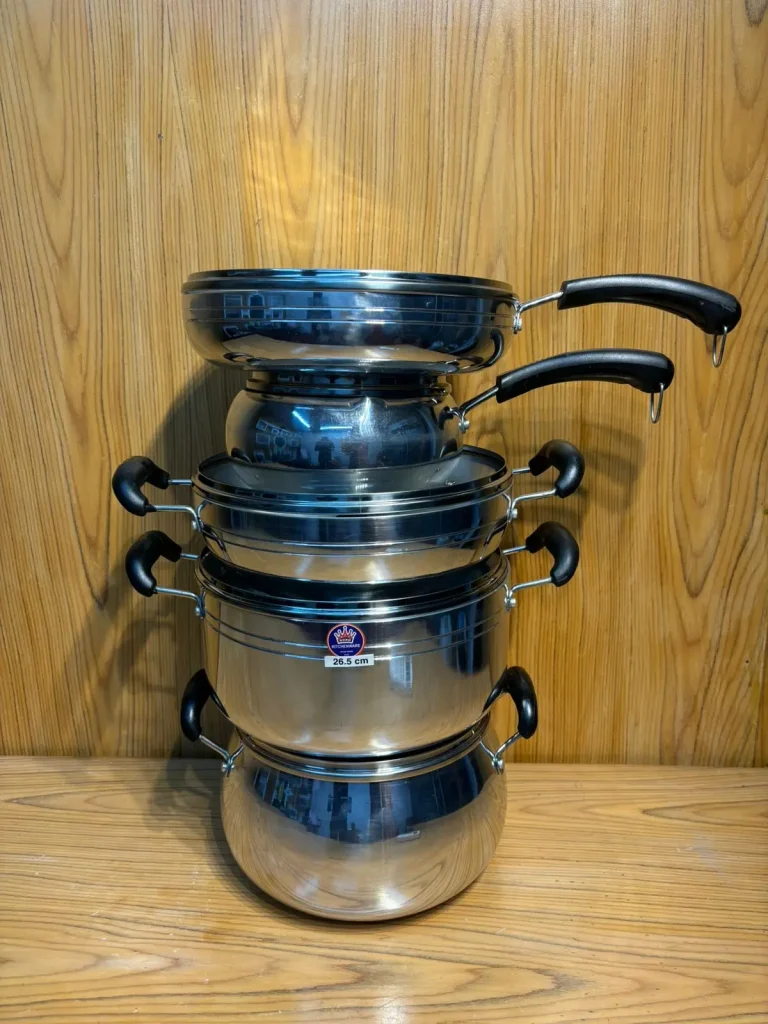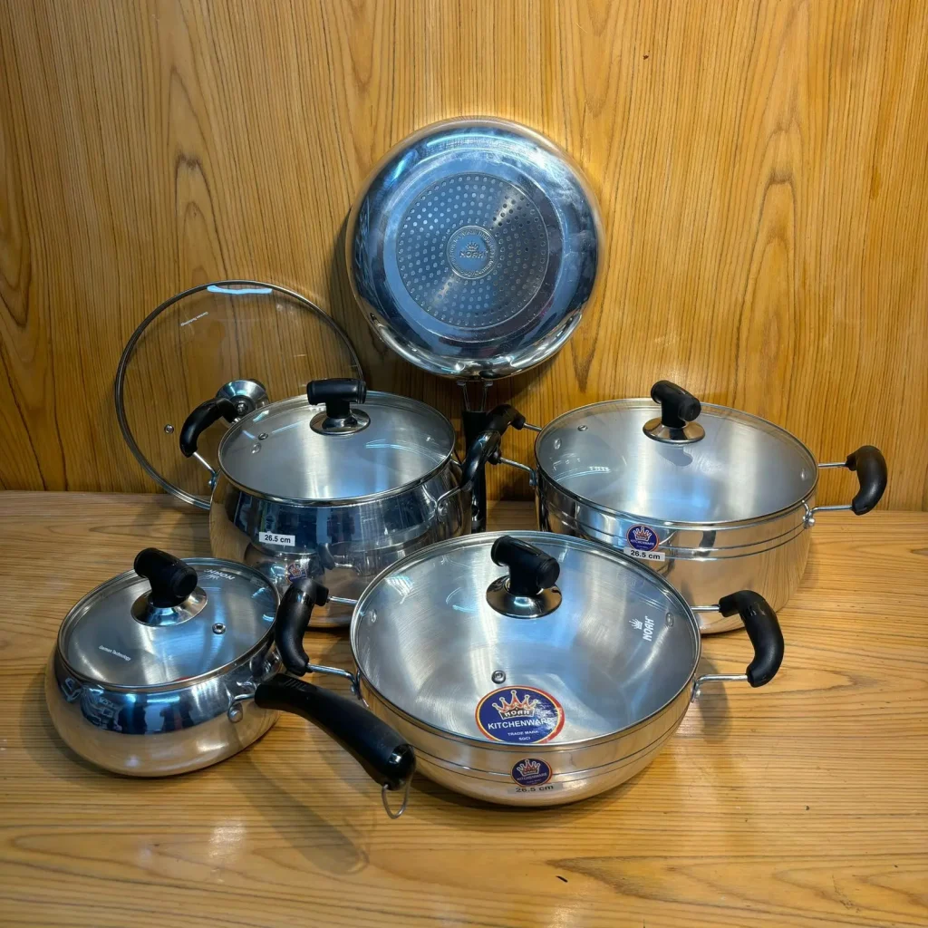 একমাত্র আমাদের অ্যানোডাইজ সেটটি ইন্ডাকশন বাটন হয়ে থাকে, যা গ্যাসের চুলা ছাড়াও যে কোনো বৈদ্যুতিক চুলা কিংবা কাঠের চুলায় রান্না করা যায়।
